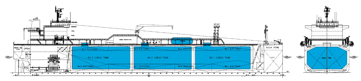 - The Vessel to be built to have three (3) independent self-supporting prismatic cargo tanks (type A) which to be designed for a maximum pressure of 0.25 barg, a minimum temperature of -50ºC and a maximum cargo specific gravity of 0.69.